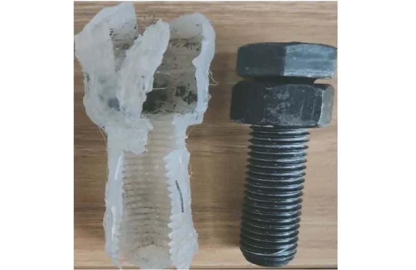 3、涂层可整体剥离,螺栓表面不残留旧涂层,如图9所示。这完全避免了更换涂层时,新旧涂层的层间剥离与新旧涂层结合不紧密的问题,使更换更方便。